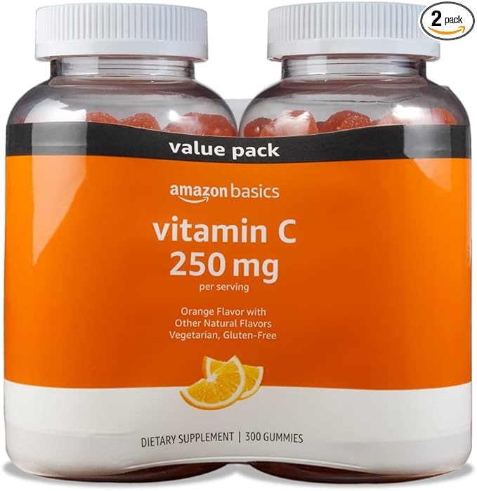 Amazon Basics Vitamin C 250 mg Gummies, Orange, 300 Count (2 Packs of 150), 2 per Serving (Previously Solimo)