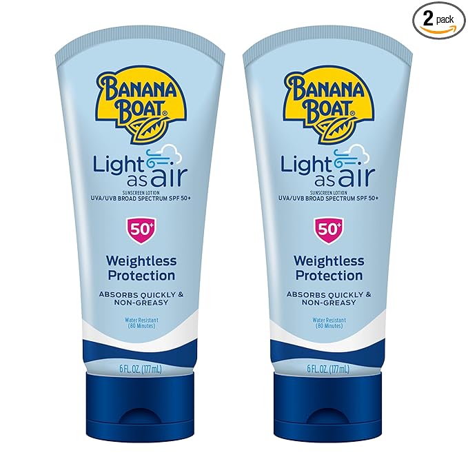 Banana Boat Light As Air Sunscreen Lotion SPF 50 Twin Pack | Lightweight & Non-Greasy Lotion Sunscreen SPF 50, Sunblock, Oxybenzone Free, 6oz each